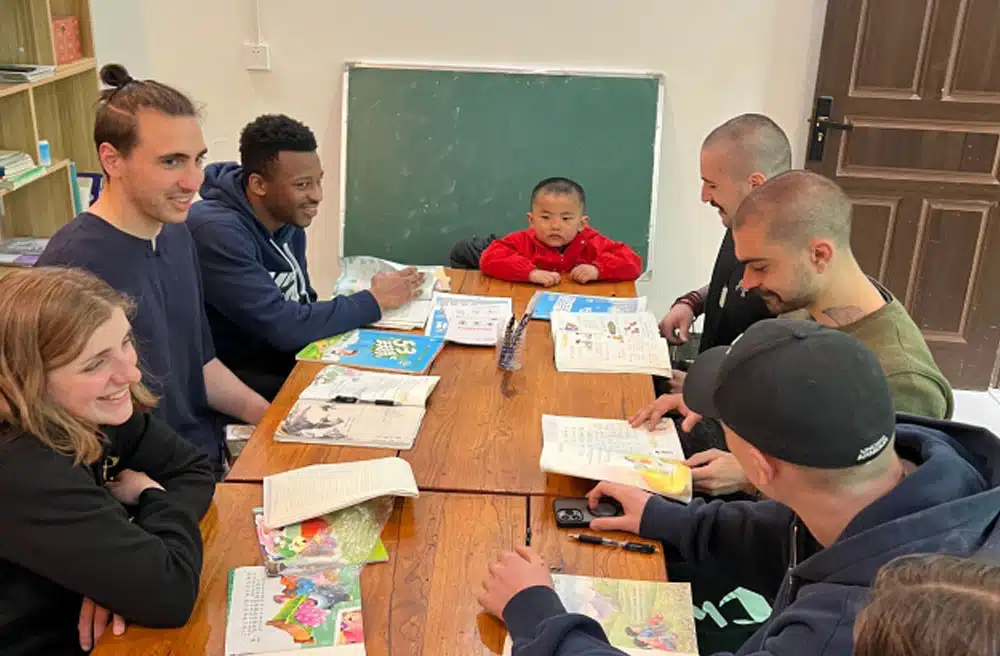 Foreign students interact with children and learn English